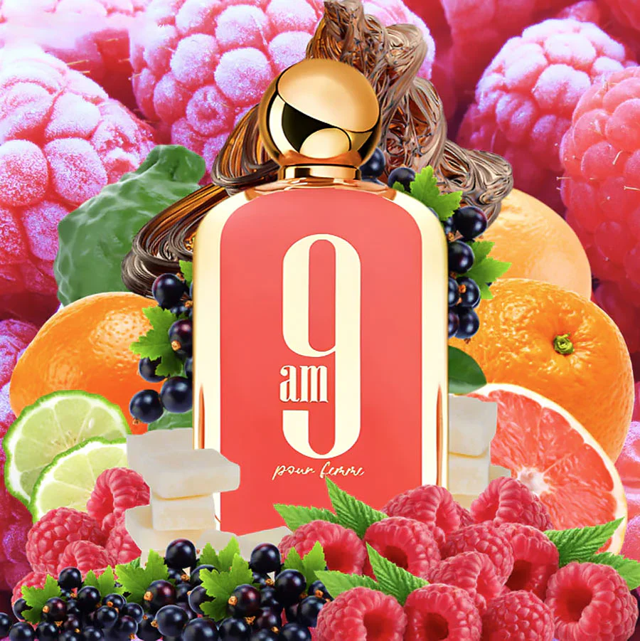 9am pour Femme by Afnan is a Oriental fragrance for women. This is a new fragrance. 9am pour Femme was launched in 2022. Top notes are Mandarin Orange, Bergamot and Grapefruit; middle notes are Raspberry and Black Currant; base notes are Musk, Amber and Orange.