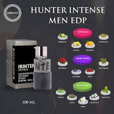Hunter Intense by Armaf is a Woody Aromatic fragrance for men. Top notes are Bergamot, Pomelo, Mandarin Orange and Lemon; middle notes are Lavender, Geranium, Tuberose and Ylang Ylang; base notes are Black Pepper and Cardamom.