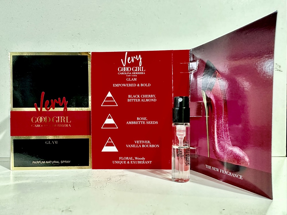 Very Good Girl Glam by Carolina Herrera is a fragrance for women. This is a new fragrance. Very Good Girl Glam was launched in 2022. Very Good Girl Glam was created by Quentin Bisch, Louise Turner and Shyamala Maisondieu. Top notes are Sour Cherry and Bitter Almond; middle notes are Rose and Lily; base notes are Bourbon Vanilla and Vetiver.