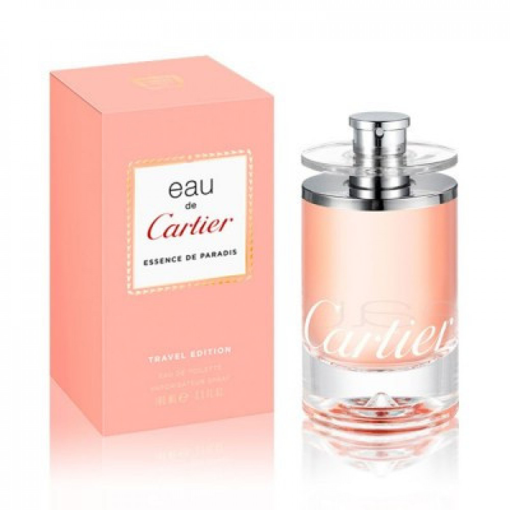 Fragrance Eau de Cartier Essence de Paradis is available in characteristic flacon form as the previous editions of the Eau de Cartier collection as a 100ml Eau de Toilette. Eau de Cartier Essence de Paradis is marked as a special TRAVEL EDITION edition which arrives in travel and duty free shops.