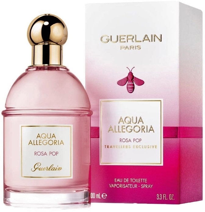 The duty free Aqua Allegoria edition for 2016 is a pink fantasy called Rosa Pop. This fruity floral fragrance includes fragrant notes of peony, rose, lemon and red berries. Available in the standard Aqua Allegoria bottle, with 100ml/3.3 fl.oz in eau de toilette concentration, and the familiar bee embossed on the cap.