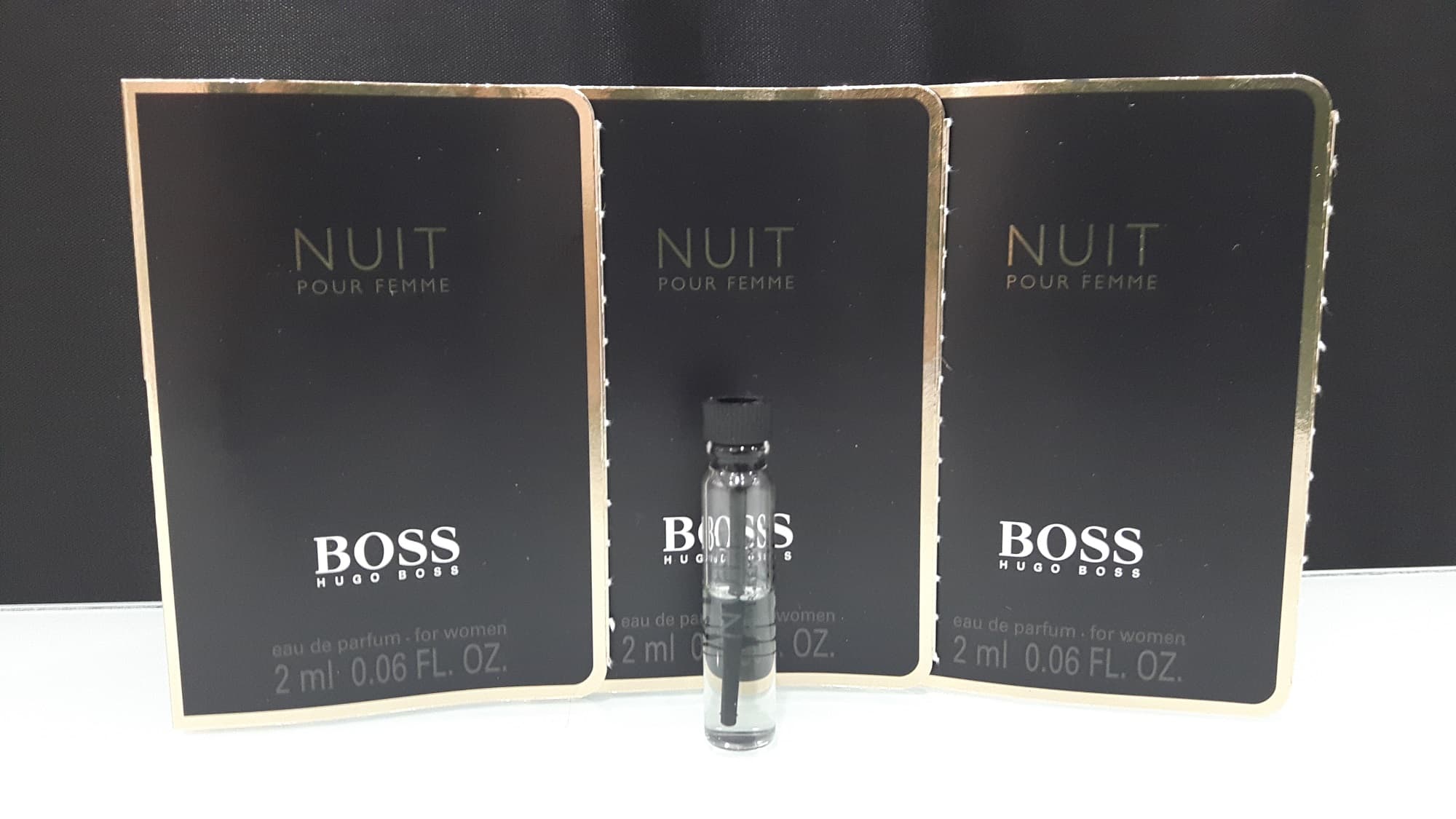 Boss Nuit Pour Femme by Hugo Boss is a Floral fragrance for women. Boss Nuit Pour Femme was launched in 2012. Top notes are Peach and Aldehydes; middle notes are White Flowers, Jasmine and Violet; base notes are Sandalwood and Moss.