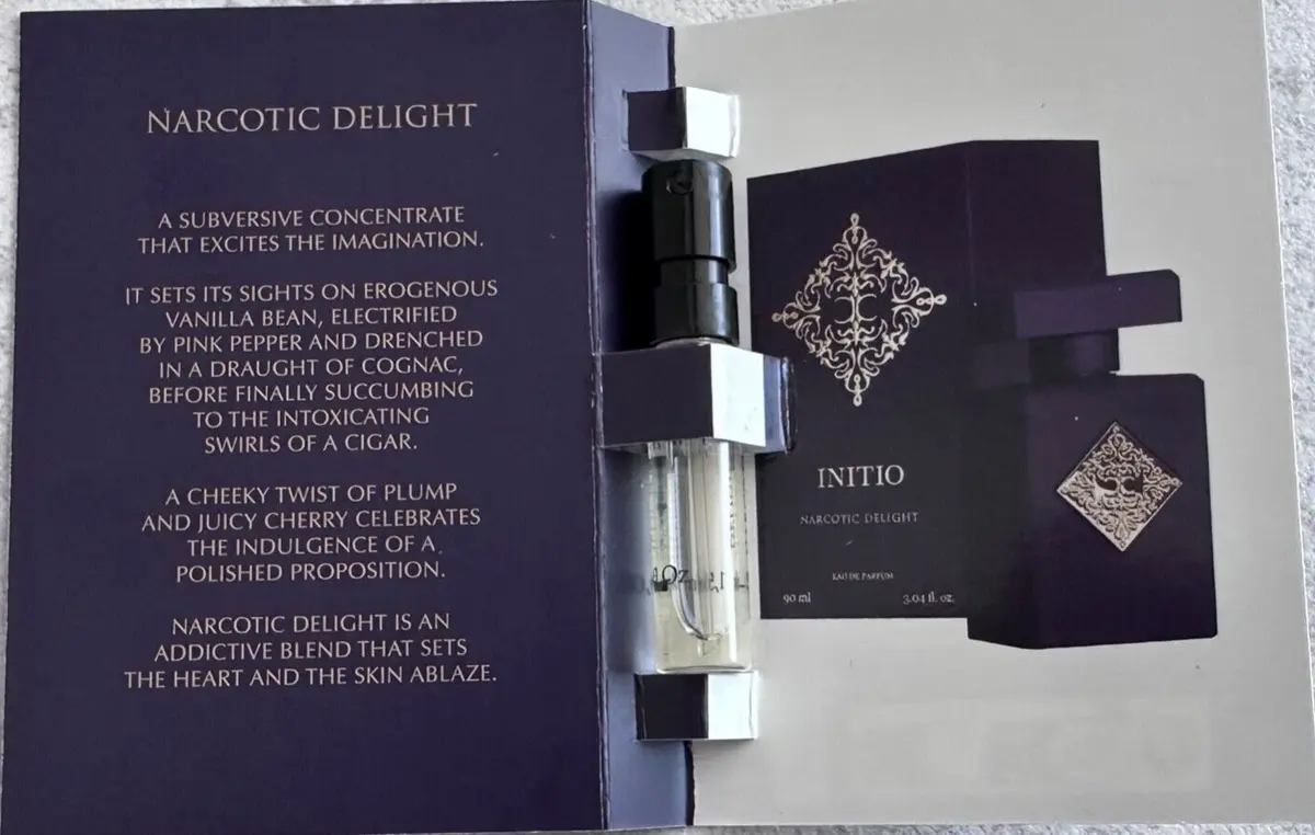 Narcotic Delight by Initio Parfums Prives is a Amber Vanilla fragrance for women and men. This is a new fragrance. Narcotic Delight was launched in 2024. Top notes are Cherry, Pink Pepper and Black Pepper; middle notes are Cognac and Hedione; base notes are Tobacco and Vanilla.