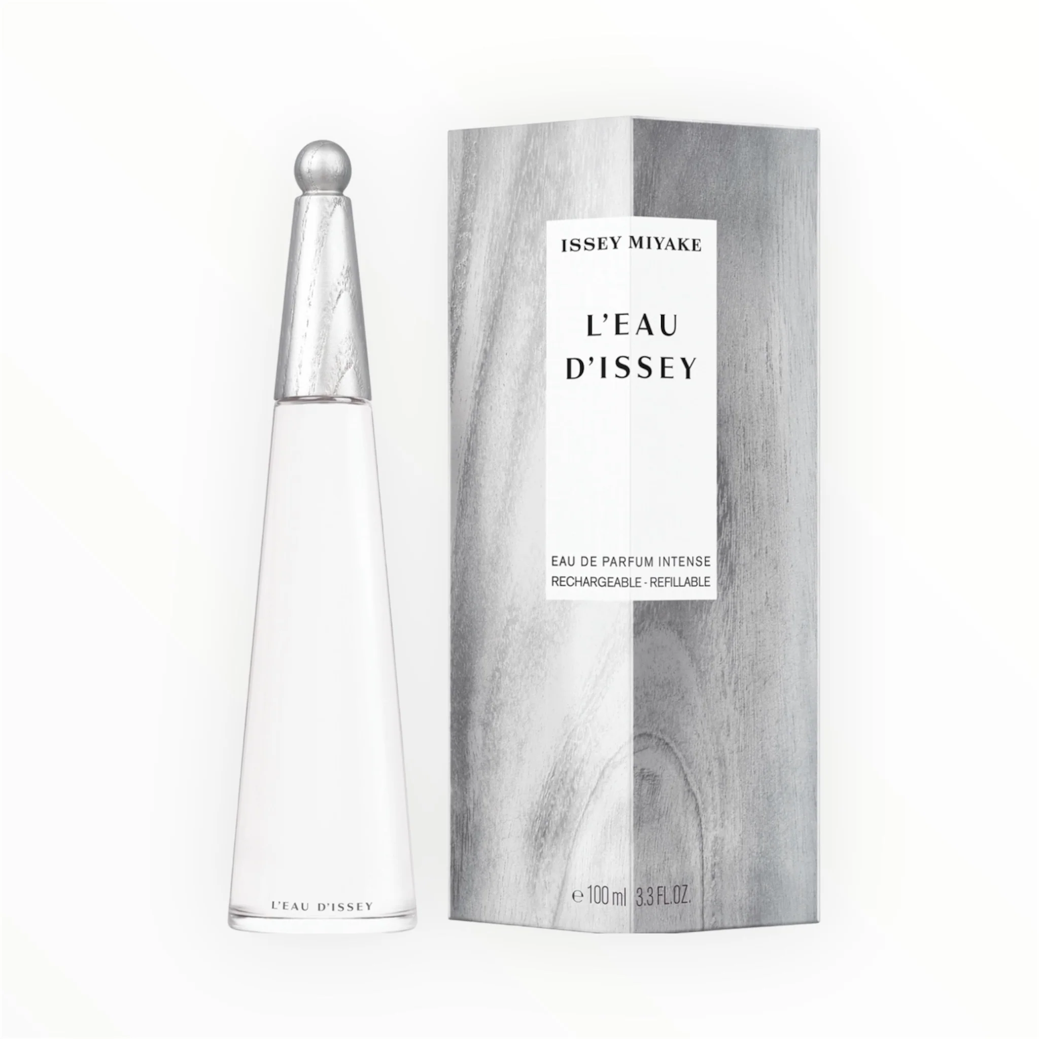 Feel on your skin the green Posidonia accord intensifying the floral, aquatic notes. Wrap yourself in the sweet generosity and radiance of ylang-ylang and in the textured sensuality of vanilla. An ode to Nature’s most sensual expression of intensity. Enjoy the subtle art of design: L’Eau d’Issey Eau de Parfum Intense recalls the emblematic bottle of L’Eau d’Issey, now adorned with a one-of-a-kind, silvery wooden cap inspired by the silvery reflections of the ocean. The bottle transparency echoes the fresh intensity of the fragrance. The silver outerpack, with a powerful wooden texture, matches the cap silvery reflections.