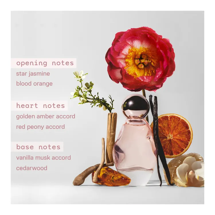 “Cosmic Kylie Jenner is a sweet, warm floral, elevated scent that is perfect for day and night. An ambery floral eau de parfum, the scent is magnetic, addictive, and out of this world. The sculptural bottle was designed to look like a piece of art from another world and is formed to fit perfectly in the palm of your hand.”