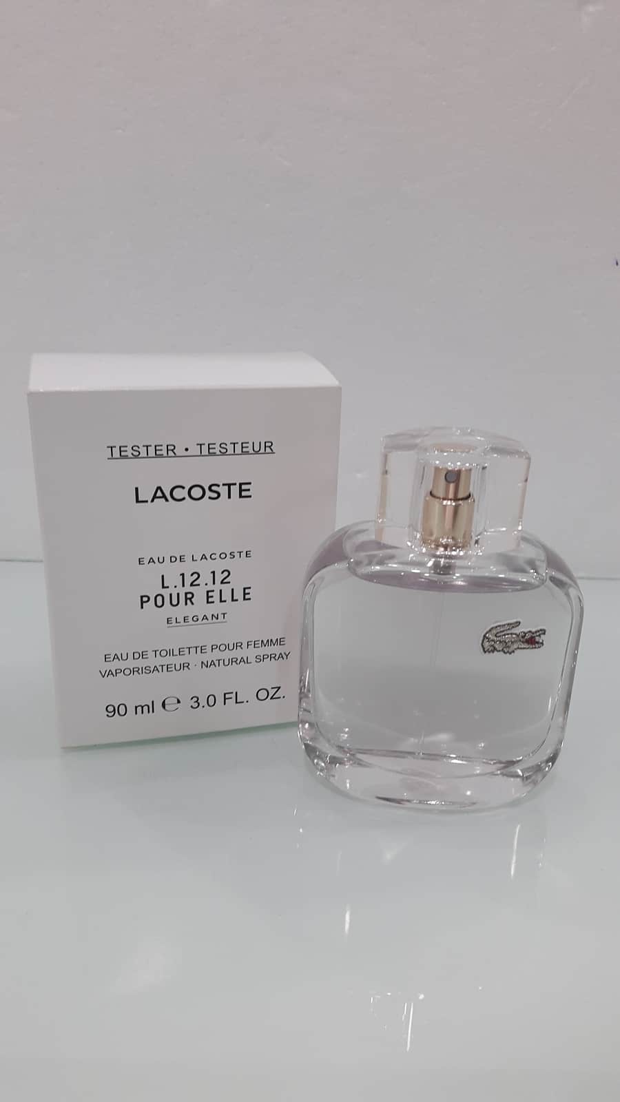 Eau de Lacoste L.12.12 Pour Elle Elegant is announced as a classic scent for a self-confident woman, always fresh and relevant. Citrus oils, cassis bud and pink pepper start the composition brightly; Elegant is toned-down by the heart of mimosa which provides softness and femininity together with violet and lily of the valley. Vetiver in the base creates a warm sensuality and an edgy signature that is complemented by notes of vanilla and heliotrope.