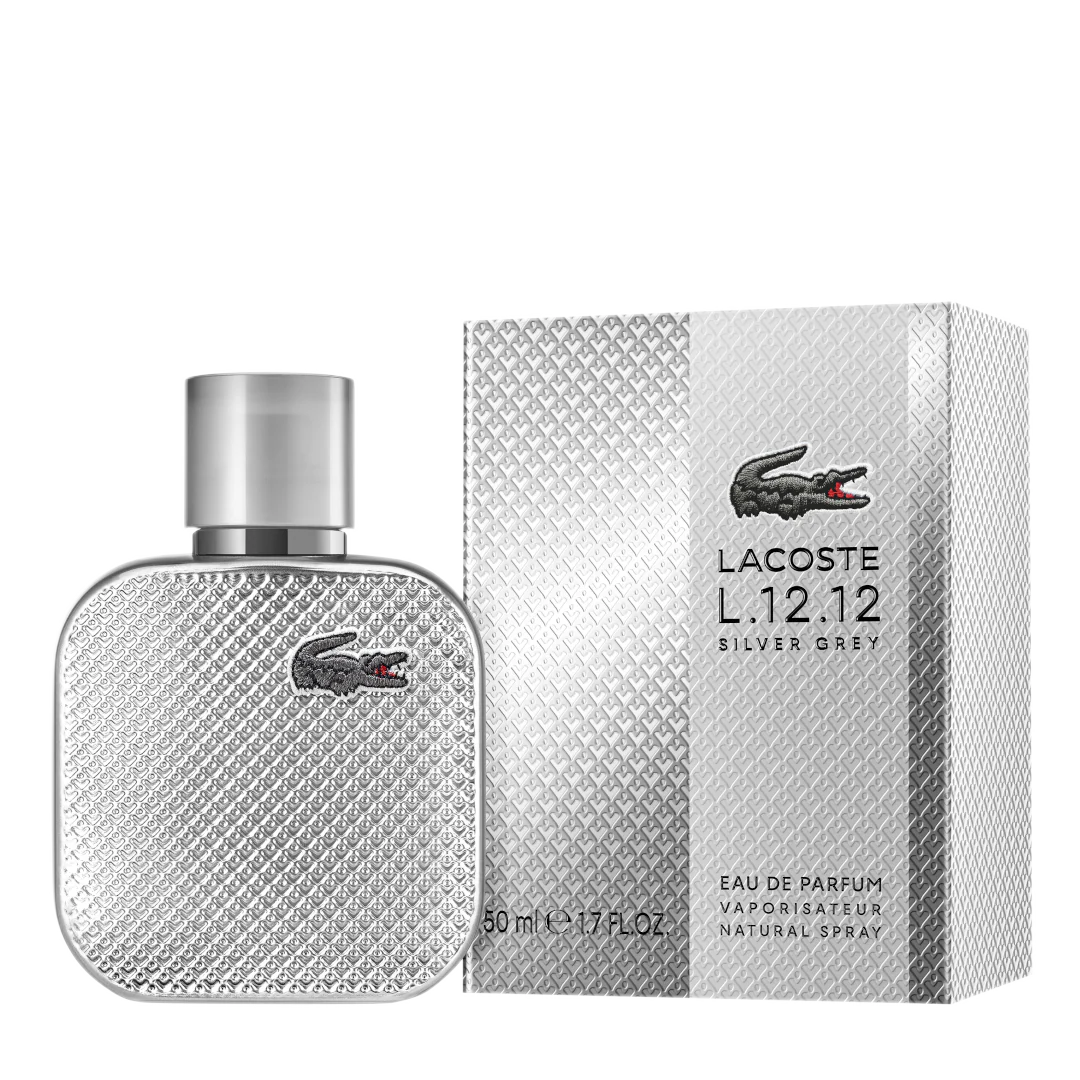Lacoste L.12.12 Silver Grey is a new fragrance for men launched in 2025. This masculine woody, fougere fragrance impeccably fuses aromatic notes of lavender and geranium with frankincense extract, revitalized by subtle tones of tangerine. The base notes of cedarwood and ambrox provide a warm and woody signature. The fragrance pays tribute to the steel tennis racket invented by René Lacoste, complementing the signature collection.