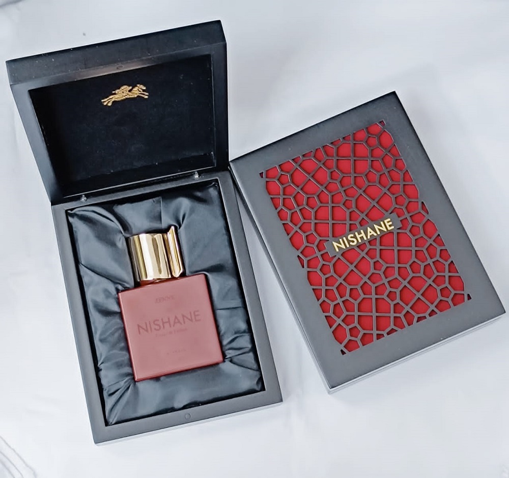 “For the collection named as “SHADOW PLAY” launched in 2017, NISHANE has got the main inspiration from the traditional shadow play which is also known as shadow puppetry, an ancient form of storytelling and entertainment which uses flat articulated cut-out figures (shadow puppets) which are held between a source of light and a translucent screen or scrim. The cut-out shapes of the puppets sometimes include translucent color or other types of detailing. Various effects can be achieved by moving both the puppets and the light source. A talented puppeteer can make the figures appear to walk, dance, fight, nod and laugh. KARAGOZ (meaning “black eye” in Turkish) and HACIVAT (shortened in time from “Hacı İvaz” meaning “İvaz the Pilgrim”), ZENNE (the common name of the generally beautiful and flirty women featuring in various plays) are the lead characters of the traditional Turkish shadow play, popularized during the Ottoman period and then spread to most nation states that comprised the Ottoman Empire and most prominently in Turkey and Greece. The creative directors Mert Güzel and Murat Katran dreamed of bringing the legend of Karagoz & Hacivat into the today’s world. Under the inspiration of their playful characters, the perfume trilogy has been created together with the perfumer Jorge Lee. Just like the theme of these shadow plays, the main objective of NISHANE was to emphasize the contrasting interaction of the people that we can see in every single culture. HACIVAT is a tribute to elegance, competence, and love of art. ZENNE is a tribute to beauty, self-confidence, and flirtation. KARAGOZ is a tribute to wittiness, straightforwardness and sincerity” — press release of the brand.