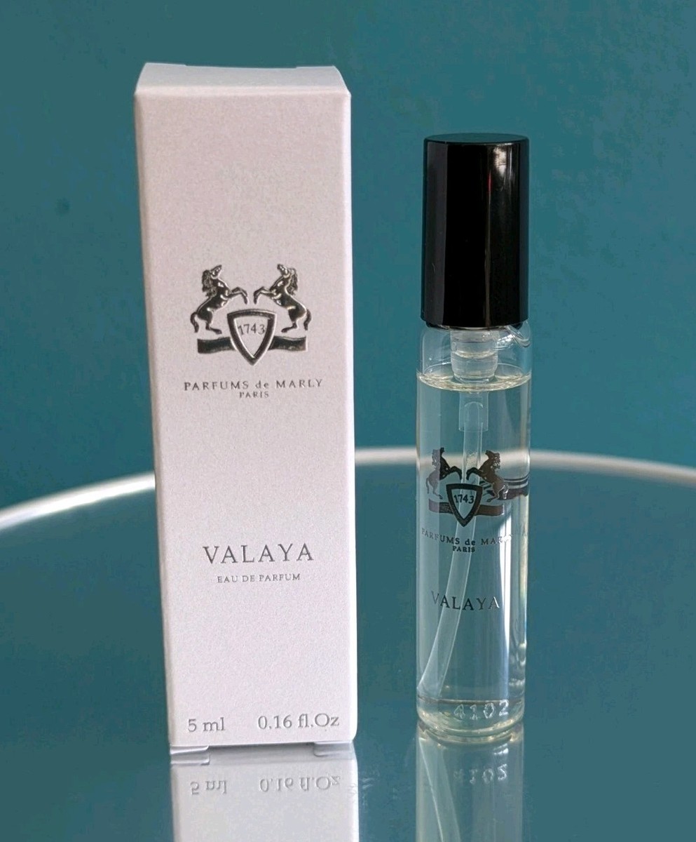 Valaya by Parfums de Marly is a Floral Fruity fragrance for women. This is a new fragrance. Valaya was launched in 2023. The nose behind this fragrance is Quentin Bisch. Top notes are Aldehydes, White Peach, Mandarin Orange and Bergamot; middle notes are Orange Blossom, Lily-of-the-Valley, Petalia, Vetiver, Nympheal™ and Mahonia; base notes are Musk, Ambroxan, Akigalawood and Vanilla.