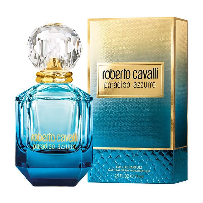 Roberto Cavalli launched Paradiso perfume in February 2015 as a carefree, vacation floral. A year later, the new version Paradiso Azzurro launches. The new edition is inspired by the images of golden light of sunrise over the azure waters of the Mediterranean Sea.
