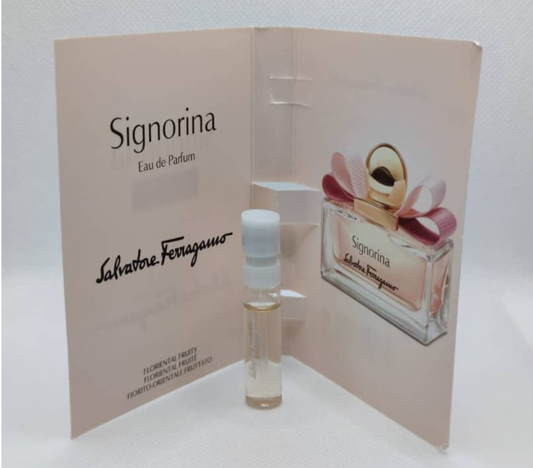 Signorina by Salvatore Ferragamo is a Floral Fruity fragrance for women. Signorina was launched in 2011. Signorina was created by Sophie Labbe and Juliette Karagueuzoglou. Top notes are Red Currant and Pink Pepper; middle notes are Rose, Peony and Jasmine; base notes are Panacotta, Musk and Patchouli.
