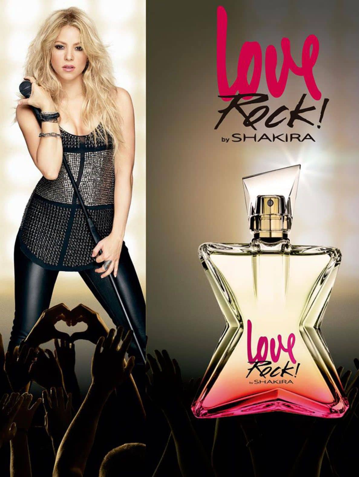 Shakira presents Love Rock in summer 2015, as a new flanker of the Rock! by Shakira fragrance from 2014. While the first fragrance captured her feeling and excitement on stage, the new edition symbolizes the bond between her and millions of her fans: energy, power and sound.