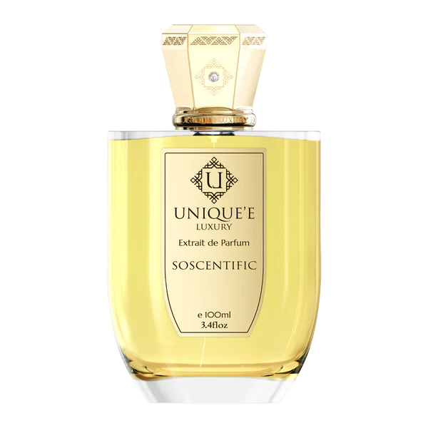 SoScentific by Unique’e Luxury is a Floral Fruity fragrance for women and men. SoScentific was launched in 2019. The nose behind this fragrance is Selim Özen. Top notes are Osmanthus, Orange Blossom and Grapefruit; middle notes are Strawberry, Peach, Plum, Pink Pepper, Cherry and Jasmine; base notes are Vanilla, Amber, Musk and Cedar.