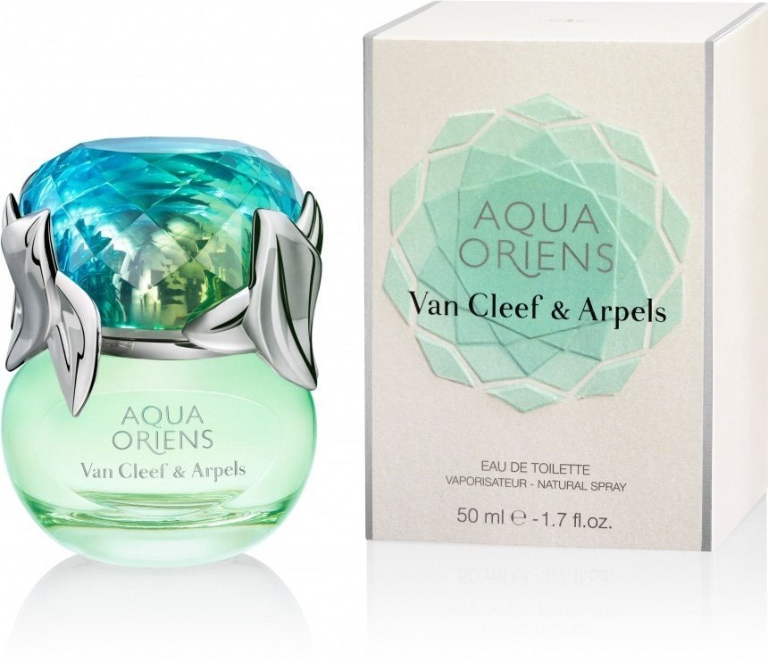 Van Cleef and Arpels Aqua Oriens is a fragrant story depicting an exotic embrace of aquatic-fruity, dewy-floral, discretely gourmand accords. Top notes include fruity zest to pear and lime providing a fresh and juicy opening spiced with a discrete gourmand note. A heart develops towards floral aromas, in a bouquet composed of orange blossom and honeysuckle, dewy and luminous. A sophisticated and sensual trail in base notes is composed of amber and musk, which are combined harmoniously. The fragrance was created by Nathalie Feistauer.