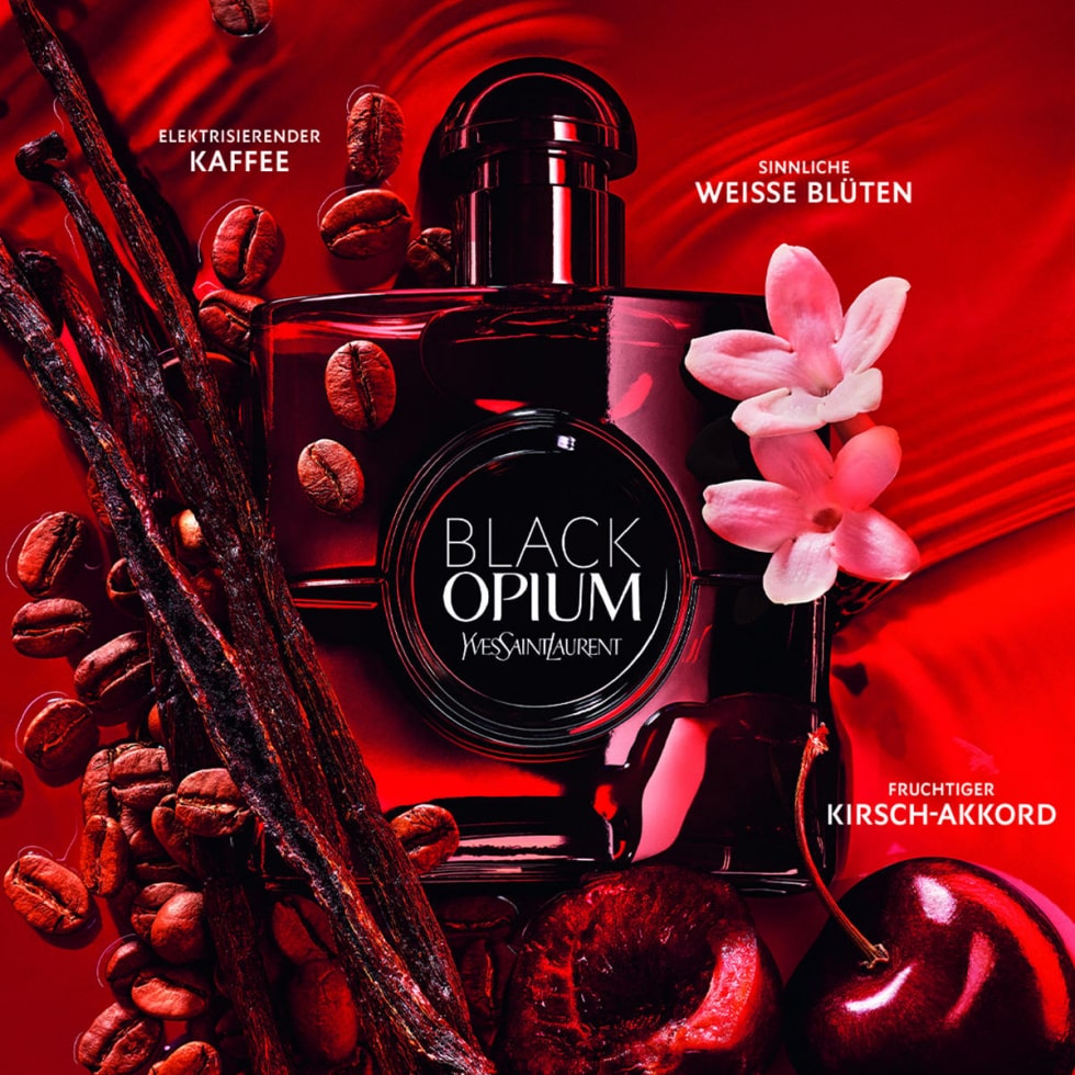 Black Opium Over Red by Yves Saint Laurent is a Floral Fruity Gourmand fragrance for women. This is a new fragrance. Black Opium Over Red was launched in 2024. Black Opium Over Red was created by Honorine Blanc, Nathalie Lorson, Marie Salamagne and Olivier Cresp. Top notes are Cherry and Green Mandarin; middle notes are Jasmine, Orange Blossom and Black Tea; base notes are Madagascar Vanilla, Coffee and Indonesian Patchouli Leaf.