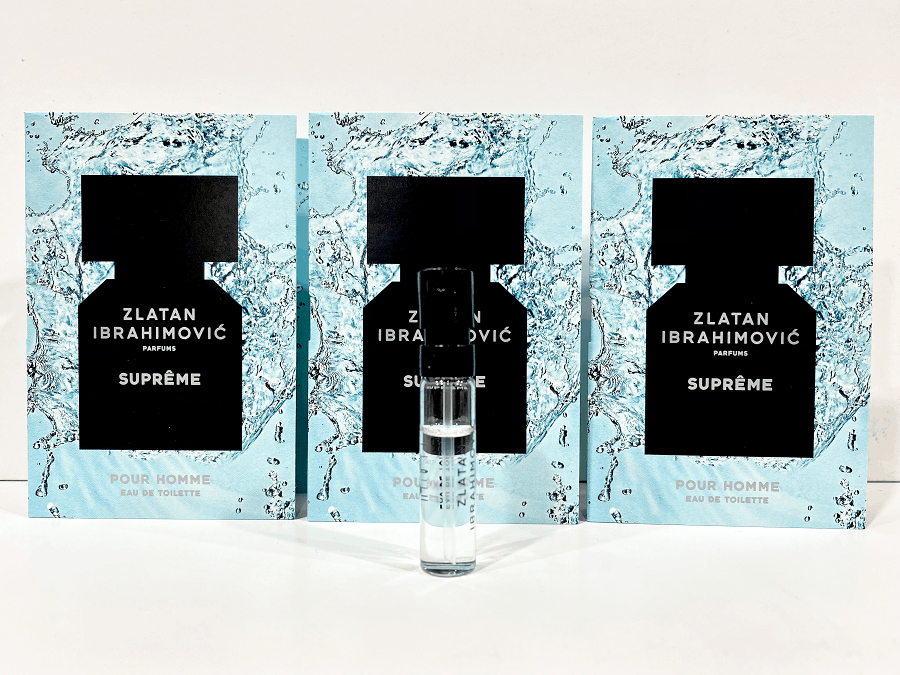 Fragrances Supreme Pour Homme and Supreme Pour Femme repeat the flacon shape of Zlatan Pour Homme in pale blue color of glass, alluding at turquoise color of the sea, refreshment and summer mood. Outer cartons are also turquoise blue with illustration of water splashing the packaging. The edition for men is available as a 50 and 100 ml Eau de Toilette, while the edition for women can be obtained solely as a 50ml Eau de Toilette. Supreme Pour Homme was launched in 2016. The nose behind this fragrance is Olivier Pescheux.